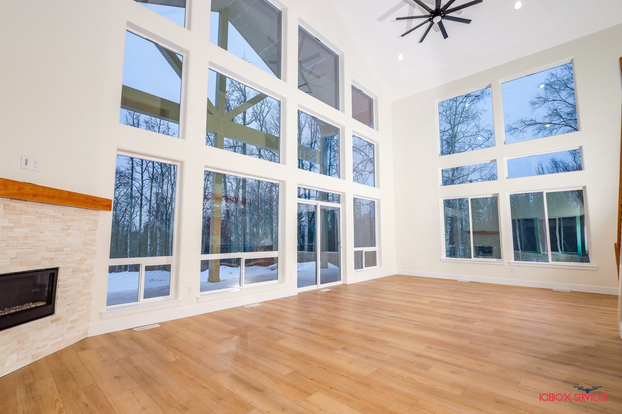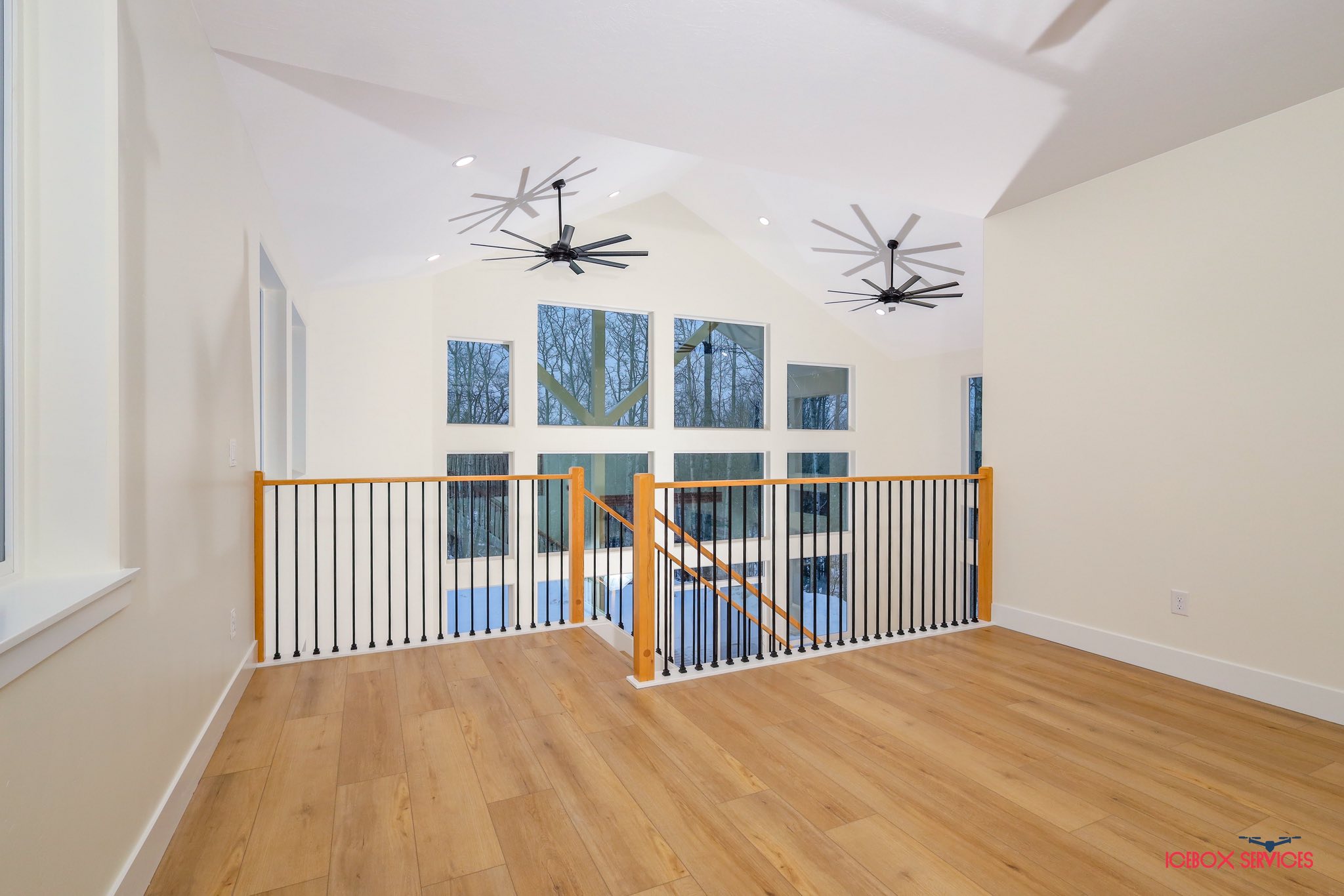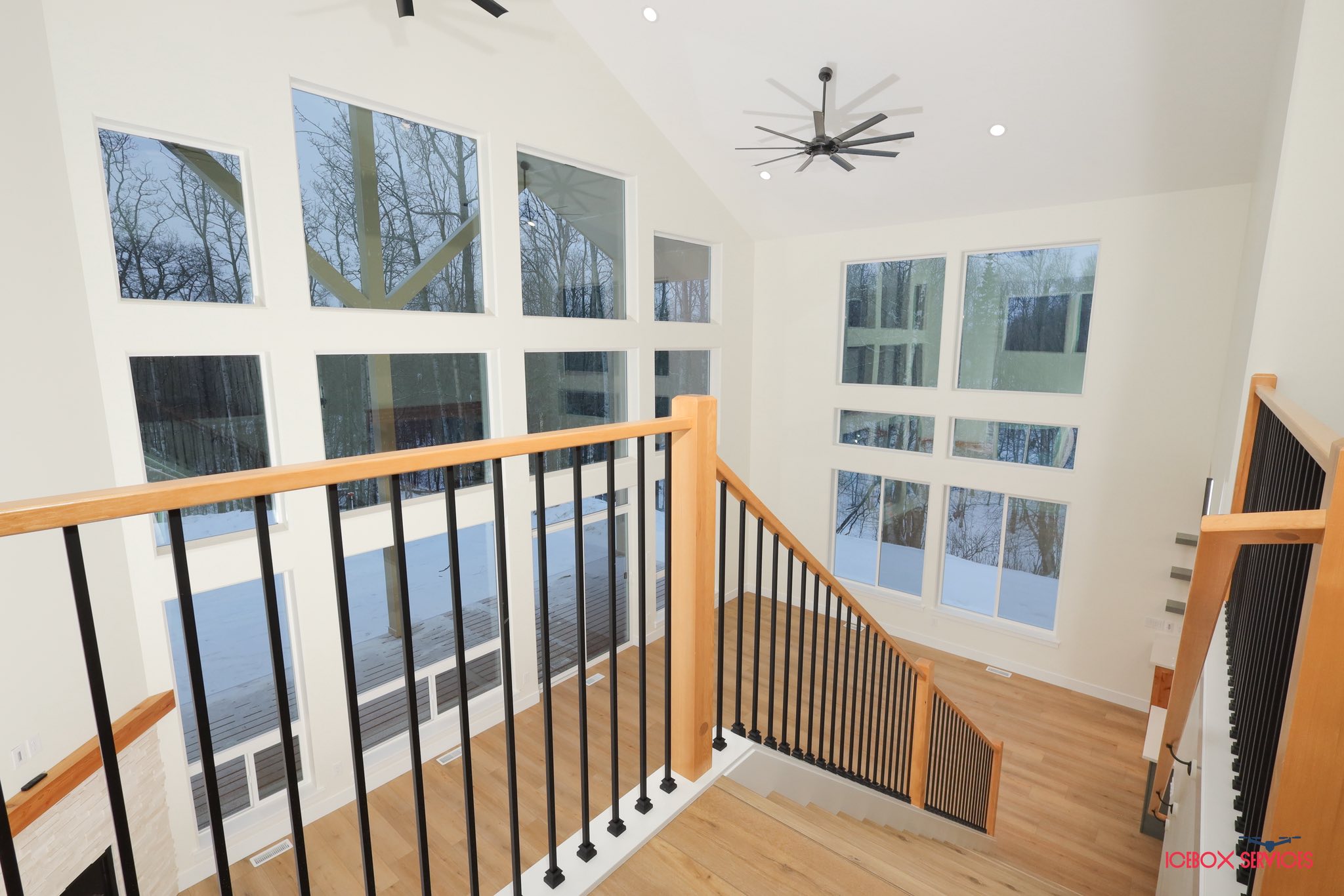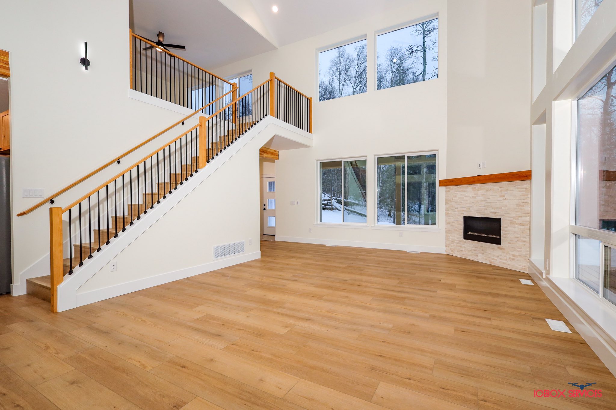 This stunning home truly has it all. Designed specifically for our clients, it begins with expansive window coverage that floods the space with natural light, paired with an impressive 24′ vaulted living and dining room. A loft above overlooks the space below, adding volume and architectural interest.