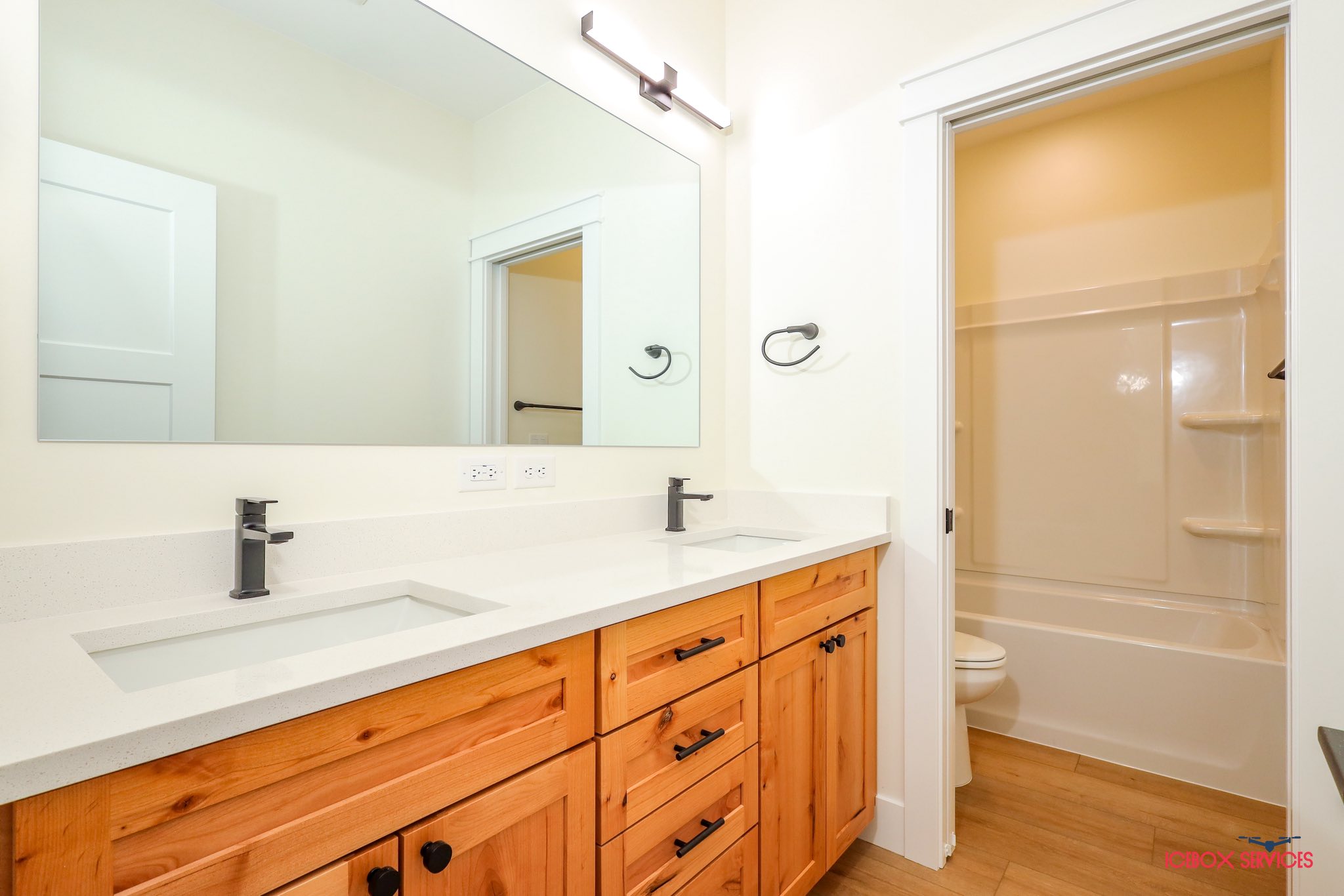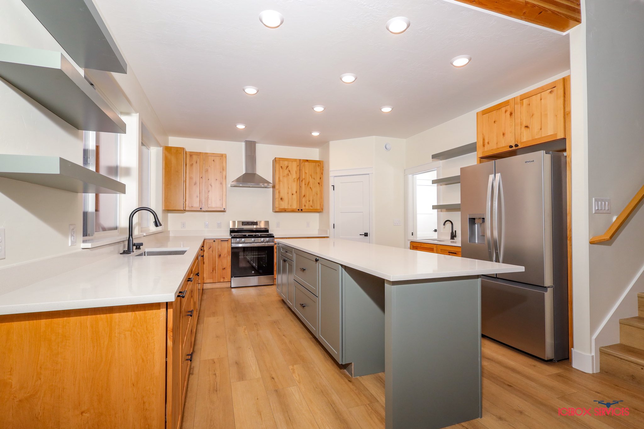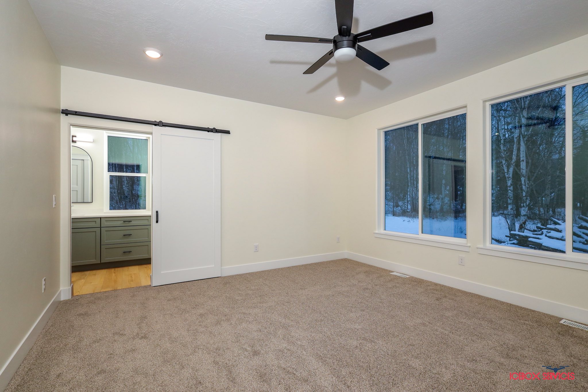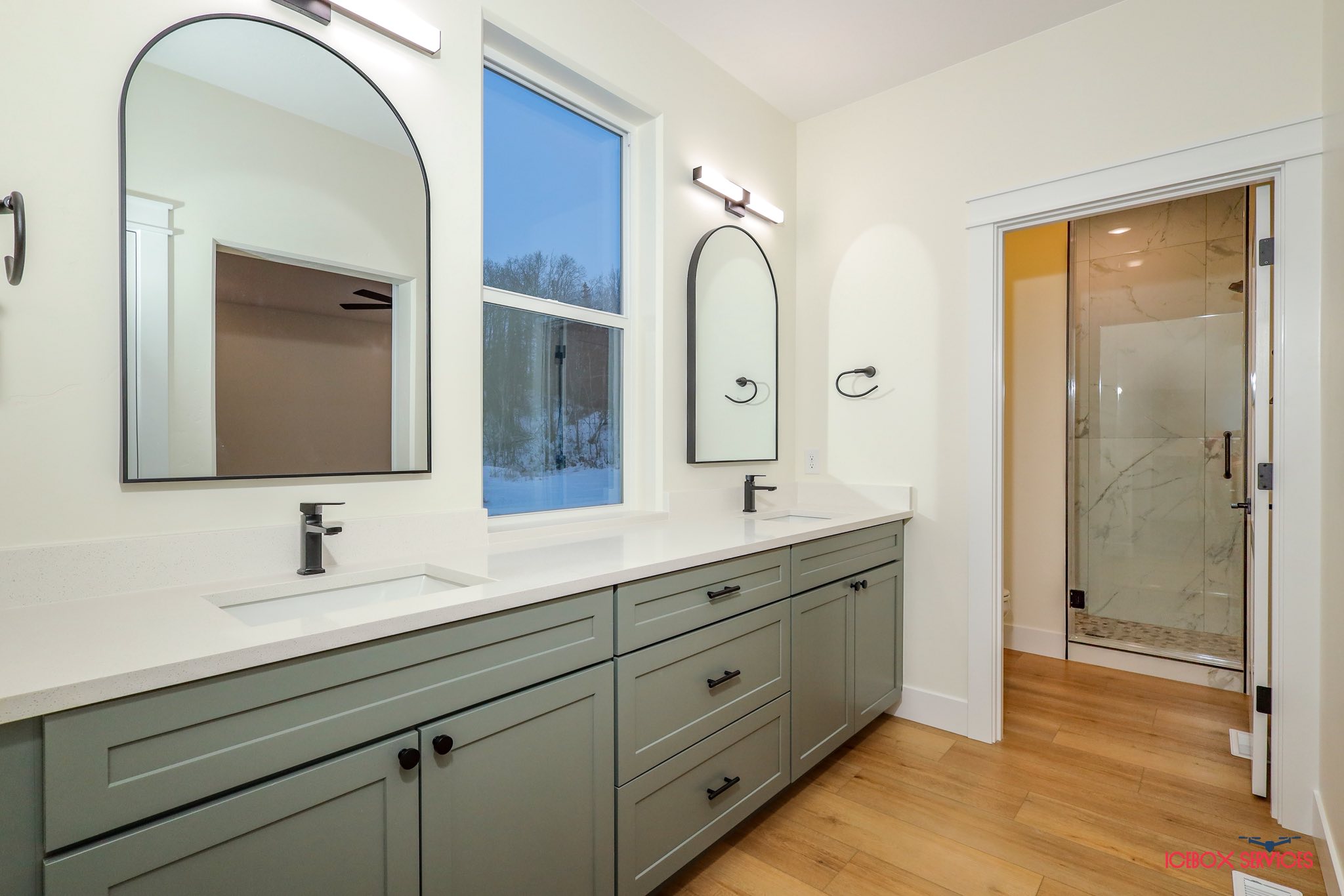 This stunning home truly has it all. Designed specifically for our clients, it begins with expansive window coverage that floods the space with natural light, paired with an impressive 24′ vaulted living and dining room. A loft above overlooks the space below, adding volume and architectural interest.